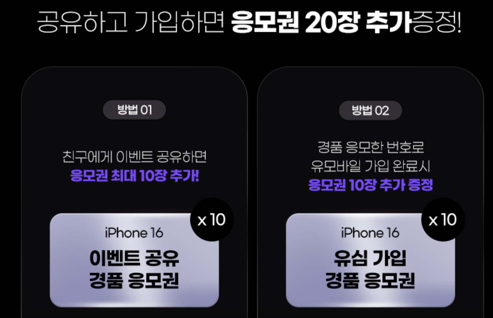 경품 응모한 번호로 유모바일 가입할 경우에도 응모권을 10장 추가 증정합니다.